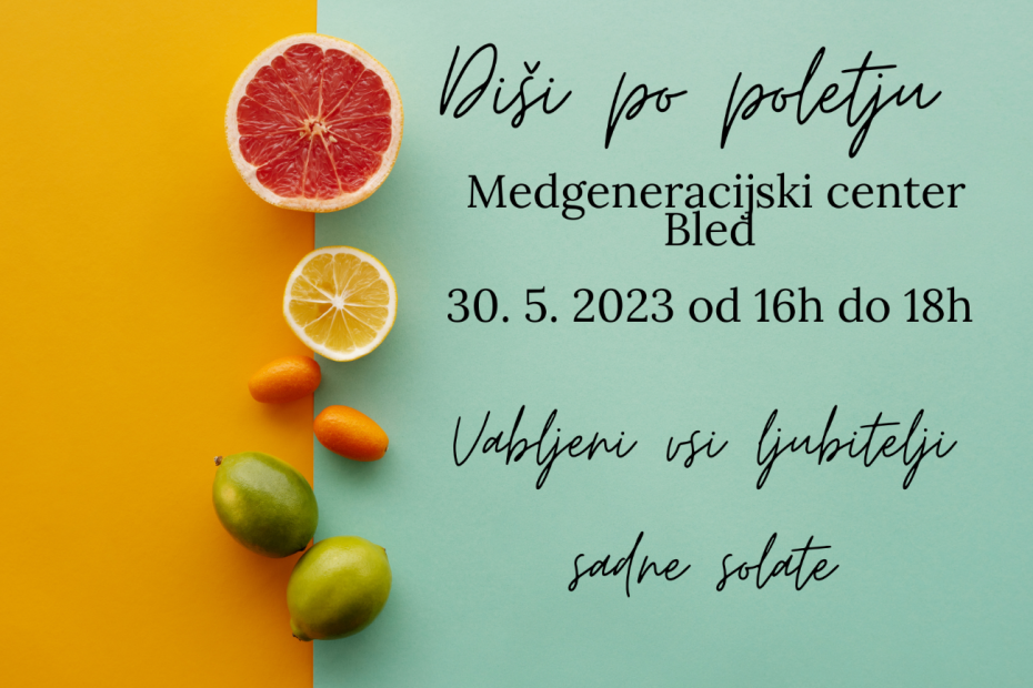 Tokrat vas vabimo na delavnico “Diši po poletju…”. Tema tokratne delavnice bo priprave slastne sadne solate. Delavnica bo potekala 30.5.2023 med 16. in 18.uro. v prostorih Medgeneracijskega centra Bled. Prijavite se lahko pri strokovnih delavkah Zavoda. Vabljeni!