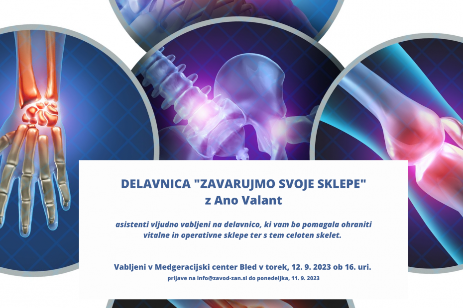 Pozdravljeni, obveščamo vas, da je delavnica “Zavarujmo svoje sklepe” prestavljena na 3.10.2023. Upamo, da se vidimo v čimvečjem številu.